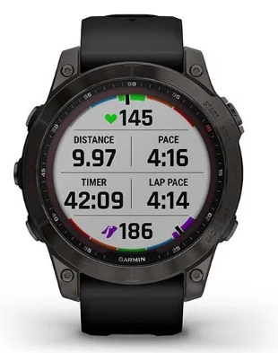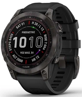 Умные часы Garmin Fenix 7 Sapphire Solar титановый серый DLC с черным ремешком