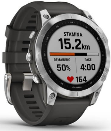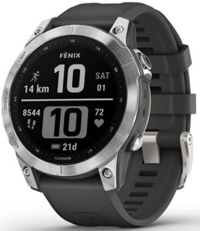 Умные часы Garmin Fenix 7 серебристый с графитовым силиконовым ремешком