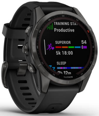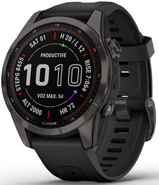 Умные часы Garmin Fenix 7s Sapphire Solar титановый серый DLC с черным ремешком