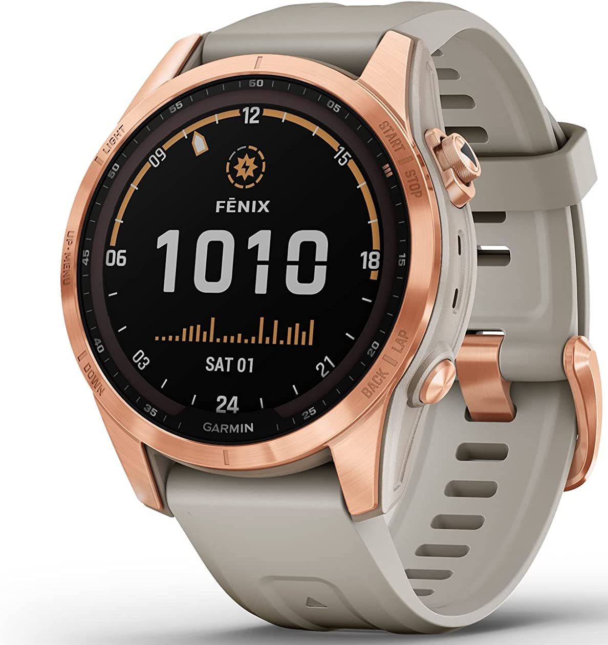 Умные часы Garmin Fenix 7s Solar розовое золото с песочным силиконовым ремешком